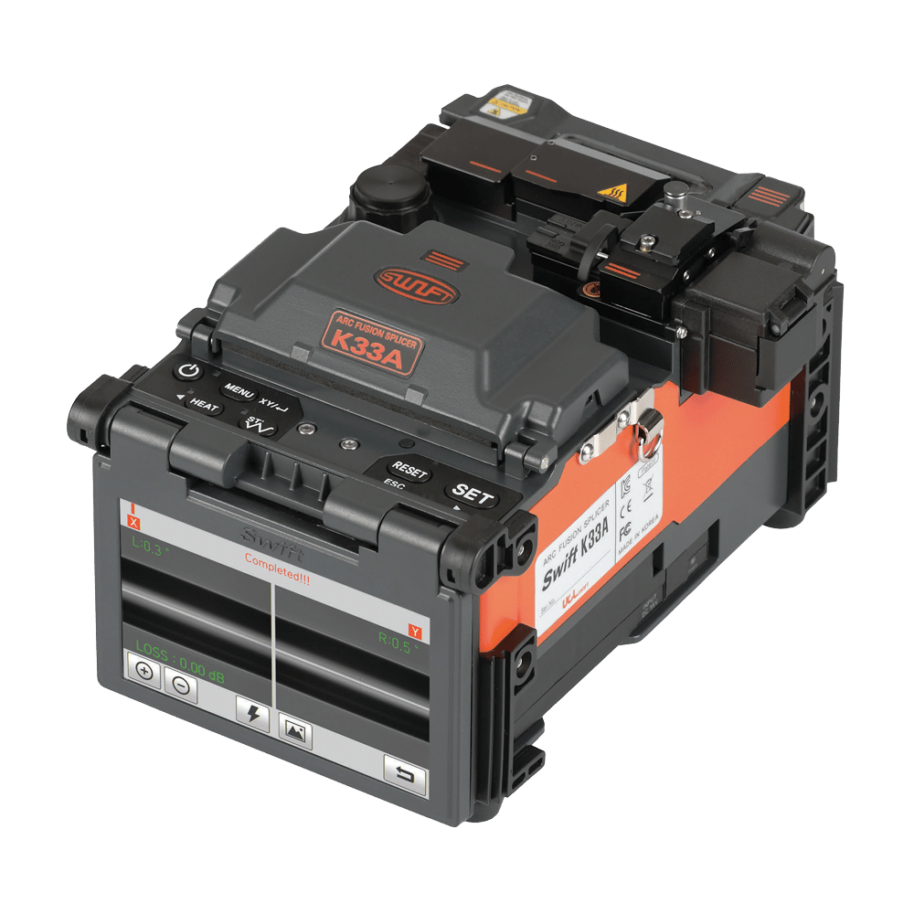 Swift K33A is All In One highly advanced IPAAS core-to-core alignment fusion splicer designed for medium and long-range optical, CATV, and FTTx networks. Features The All-In-One system provides exceptional workability, integrating 5 functions in one unit (stripping, cleaning, cleaving, splicing and protecting)
